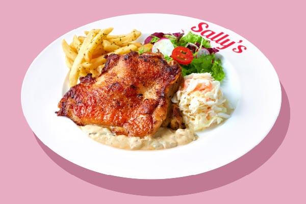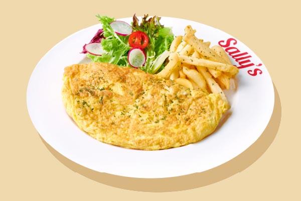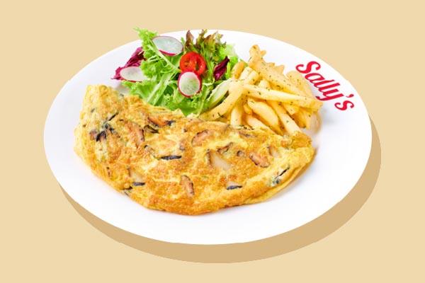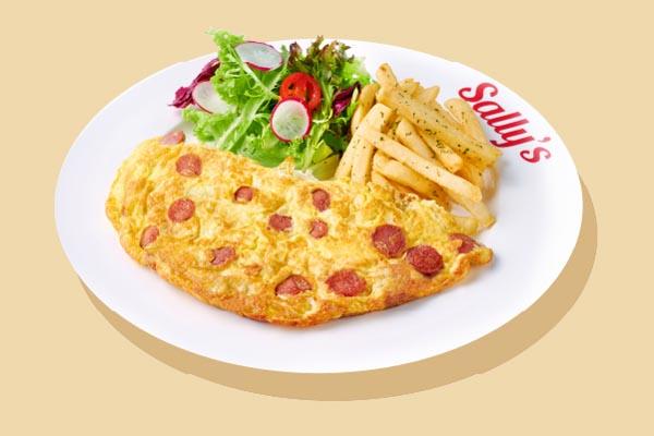 Chicken Sausage and Cheese Omelette with Fries & Salad