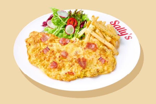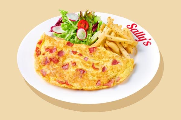 Chicken Ham and Cheese Omelette with Fries & Salad